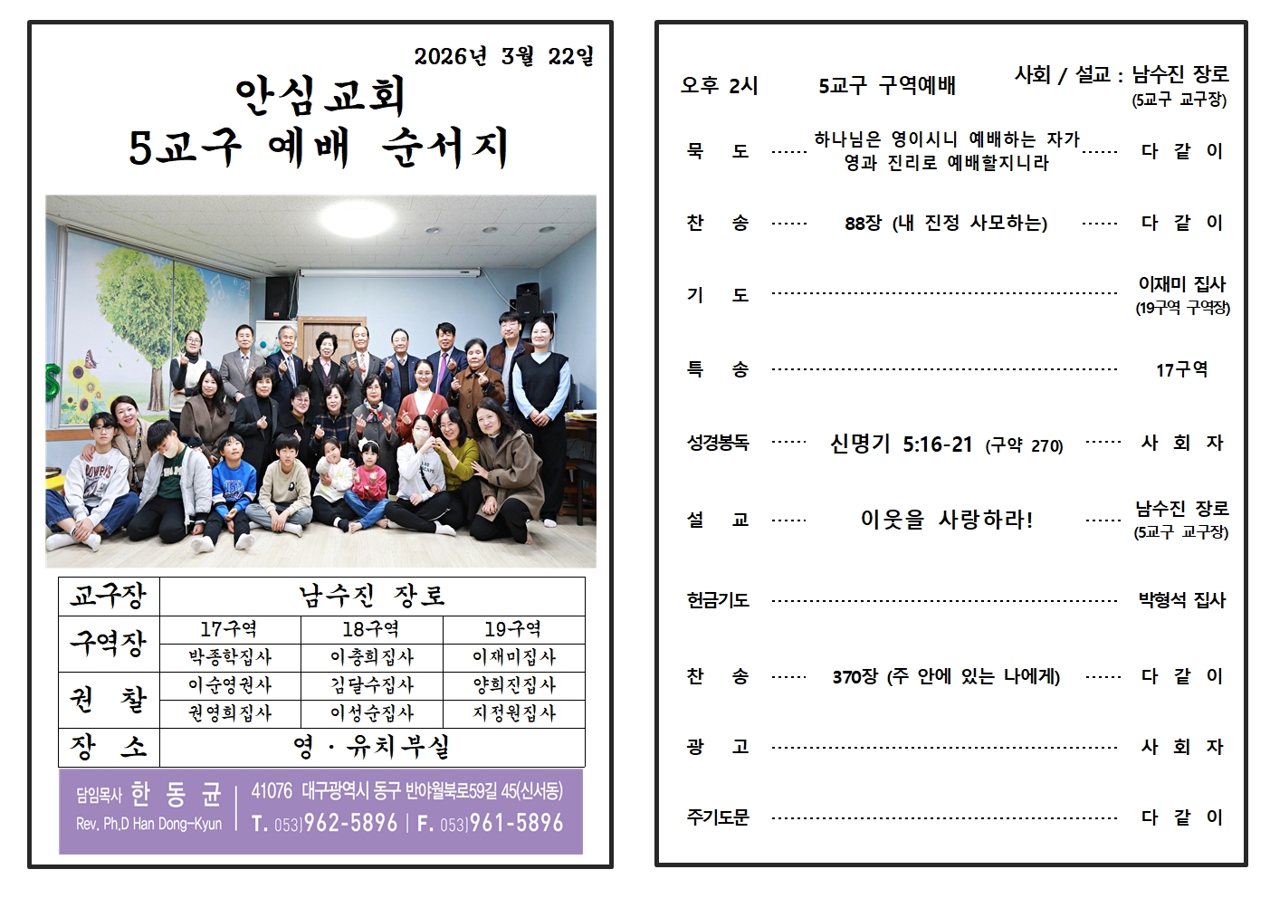 5교구 교구별 오후예배 _ 대구 안심교회