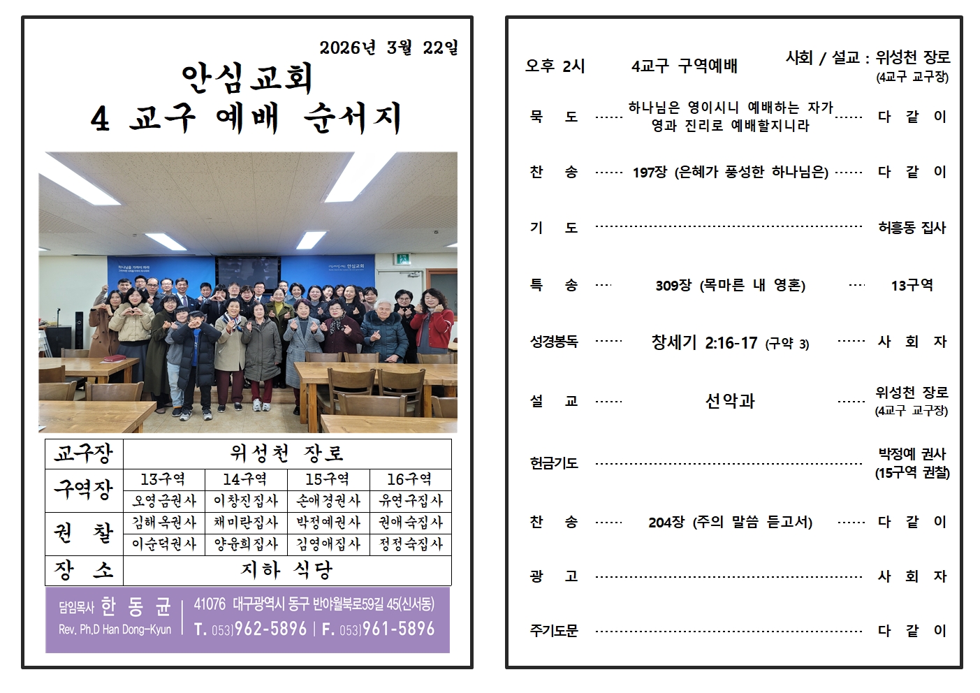 3교구 교구별 오후예배 _ 대구 안심교회